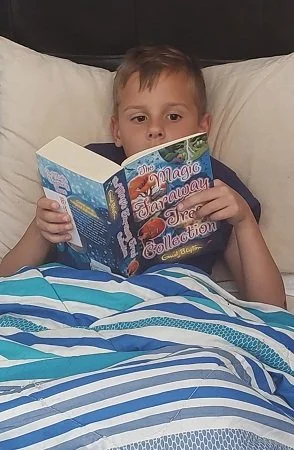 Mariette & Warren’s son West, engrossed in a book